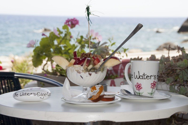 fresh juices *** yoghurt smoothies (mmmmmm) *** milk shakes *** yoghurts *** fruit salads ***home-made cakes and cheesecakes*** fresh made pancakes with butter and honey……….***home-made burgers (beef and vegetarian options) ***hand cut fries………