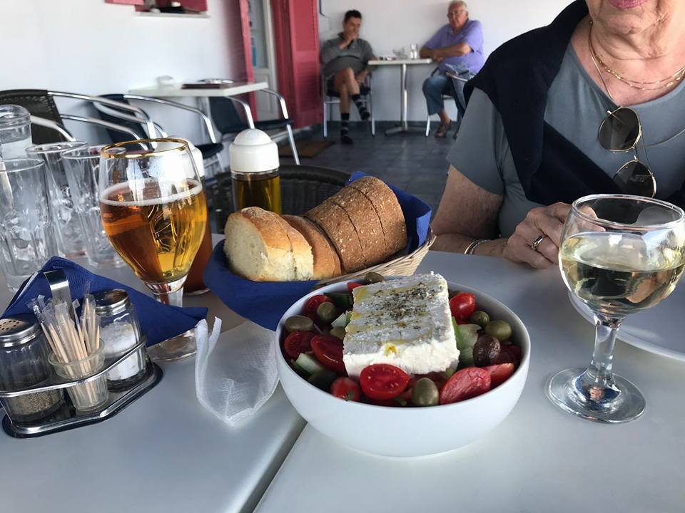 No 5 – OJ, Tea/Coffee, Yoghurt & Honey, Paximathi (Rusk Bread), Feta, Graviera Cheese, Olives, Tomato & Olive Oil………….. and a glass of raki for the brave!