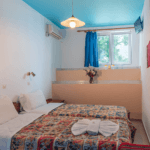 All the studios and apartments at Haris Studios have a small kitchen with 2 ring hot plate & refrigerator, dining area, toilet /shower, hair dryer, air-conditioning, flat screen tv, wi-fi. In addition there are washing machines for hire, a book corner, swimming pool, garden and roof terrace at our other building – Studios Yiorgos..