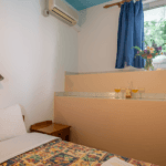 A studio is one-room-with-everything plus the toilet/shower and sleeps 2, some studios are large enough for a baby bed or pull out bed to be added. There are 5 sea facing studios and 1 double bed studio with no sea view – it has a small balcony with afternoon sun.