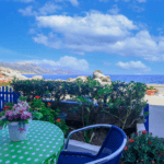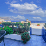 You will find us in the ‘old town’, known locally as Gavdiotika, named after the many settlers who came here early last century from the island of Gavdos to make a new life and build their homes. Many of those single storey stone houses looked out to their birthplace and a few of them remain. It’s easy to see why they would want to settle on this rocky shoreline – the mystical island of Gavdos reveals itself when weather conditions permit, a view that can be enjoyed from the first floor balconies or ground floor terraces at Haris Studios